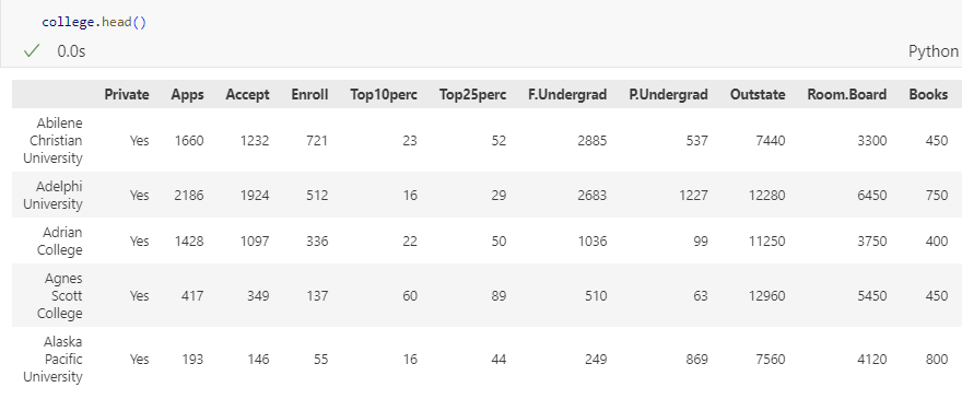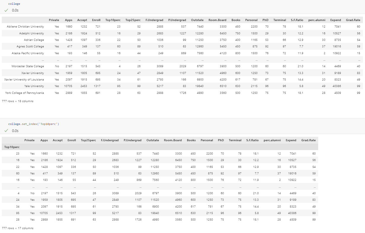 - 'college' data frame의 인덱스가 대학교의 이름으로 지정되어 있다면 행을 조회할 때 대학교의 이름으로 인덱싱을 진행해야한다
