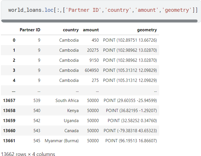 - geopandas는 pandas의 데이터 타입을 확장하여 geometric(기하학적)타입에 대해 spital(공간)작업을 가능하도록한다