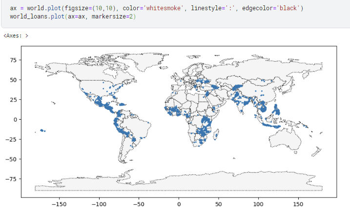 - geopandas에서 제공하는 세계지도 데이터 위에 우리가 가진 정보를 함께 plot하면 지도상에서 시각화 가능